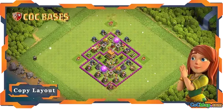 Additionally, this layout includes a shareable link for easy deployment and customization in your game. It is ideal for players seeking to defend actively against both farm and attack strategies, ensuring a balanced base that offers resilience, resource security, and an effective anti-3-star tactic for TH6 players.