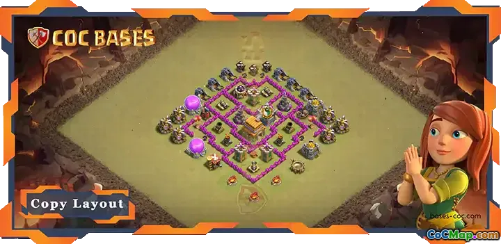 This Town Hall 6 war base layout serves as an excellent choice for players looking to enhance their defense during Clan Wars and CWL. Its thoughtful configuration not only protects the Town Hall but also inhibits attackers' strategies, making it difficult for them to score high against the base. With a well-structured defense and an array of overlapping coverage from various defenses, players can rely on this layout to keep their bases secure in the competitive environment of Clash of Clans.