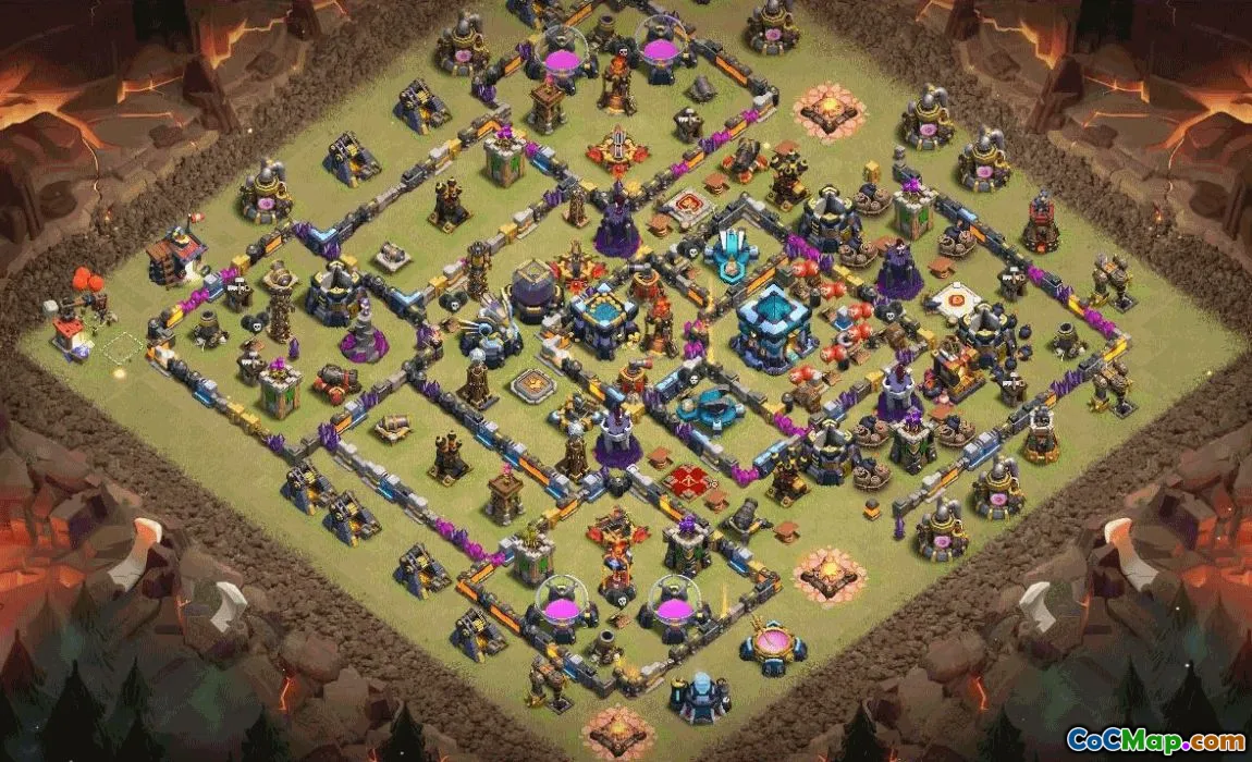 Ideal for trophy battles, farming, or map-focused clan wars, this base adapts easily. Use the coc map to rotate sections or tweak trap placements to suit your clan strategy. The copyable layout combines clear visuals with solid defenses, giving TH13 players a reliable template they can trust during fast-paced raids.