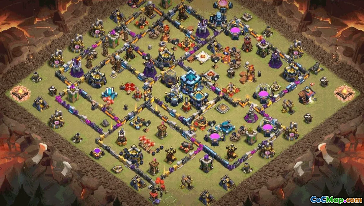 This Town Hall 13 base layout copy delivers balanced defense for home village, trophy base, and war base in Clash of Clans. It centers the Town Hall while distributing defenses and traps to deter air and ground attacks. A solid coc map flow creates funnels, protecting storages while keeping the clan castle and key heroes within safe reach. The layout emphasizes anti-3 star potential with layered defenses and room for adjustment to suit trophy ranges and clan war patterns.