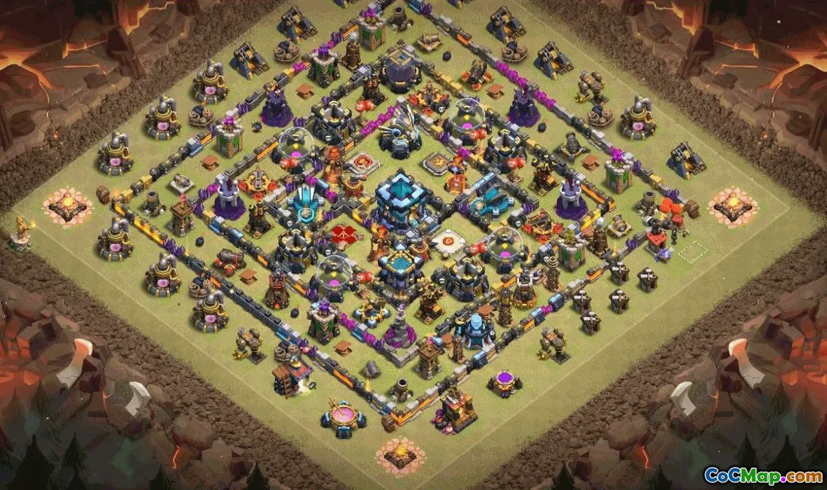 This copy-ready Town Hall 13 base prioritizes balance between defense and accessibility, making it easy to clone with one link. Central Eagle Artillery sits behind layered compartments, while X-Bows and Air Defenses guard key approaches. The design funnels attackers toward traps and sacrifice points, reducing the impact of golem hunts and mass balloon raids.