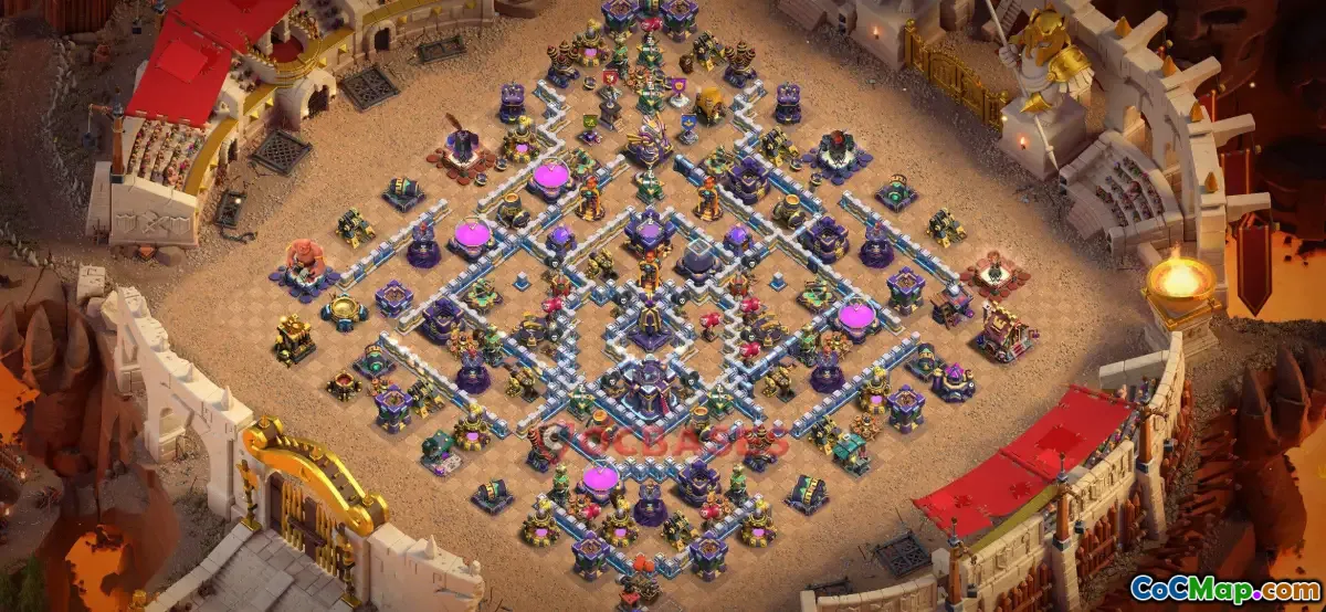 The Town Hall 15 war base layout in Clash of Clans is designed to provide strong defenses against attacking clans during war. This base setup focuses on protecting the core of the village, including the Town Hall, storages, and key defenses such as X-Bows, Inferno Towers, and Archer Towers. Typically, the design incorporates well-placed walls, traps, and multi-layered defenses to slow down and weaken enemy troops as they attempt to breach the base.