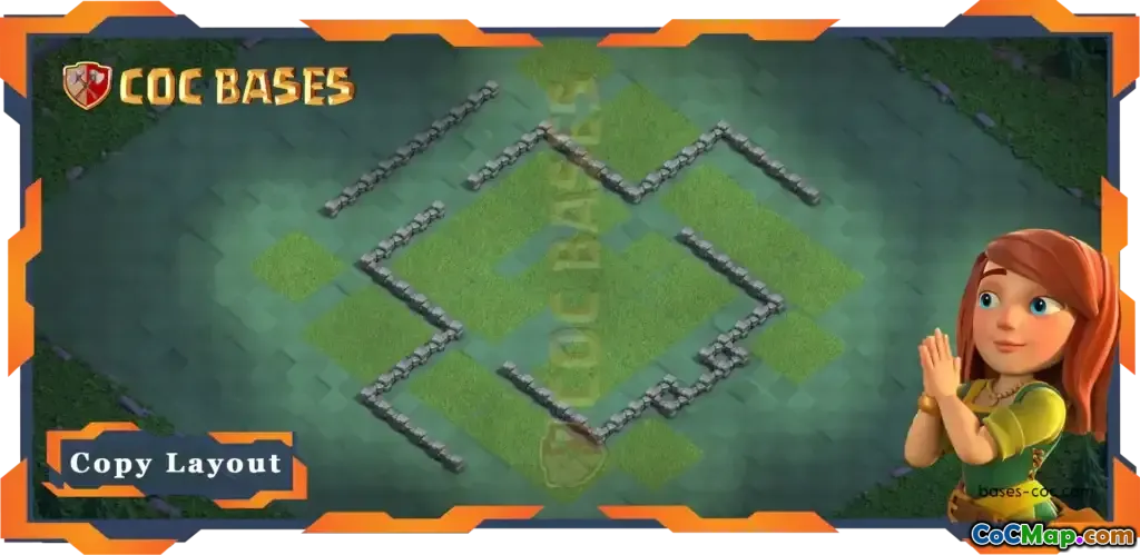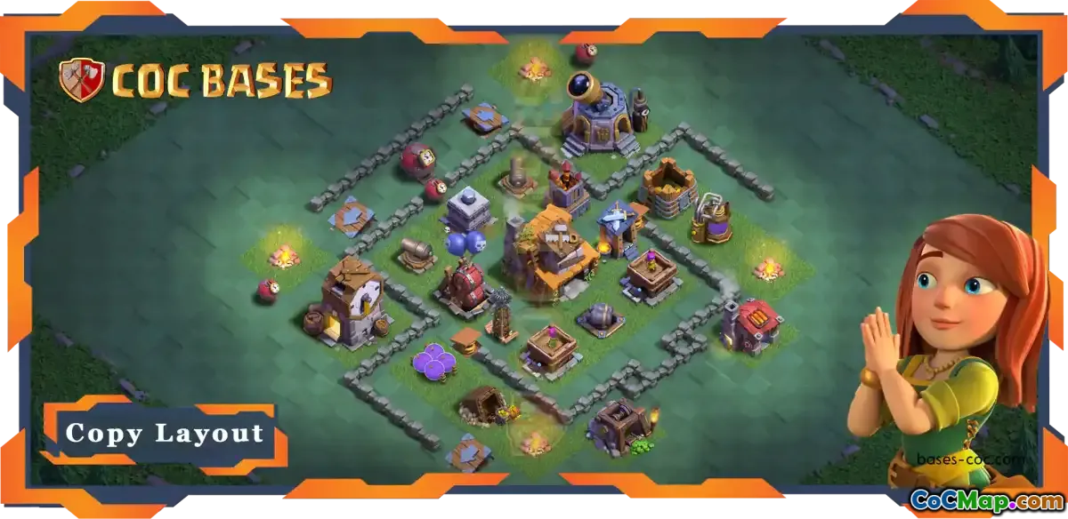 მშენებლის დარბაზის ბაზის დიზაინი, რომელიც ცნობილია როგორც bh04, შეიცავს სტრატეგიულად განლაგებულ მშენებელ დარბაზს, რომელიც მდებარეობს განლაგების ცენტრში. ეს ცენტრალური პოზიციონირება აუცილებელია, რადგან ის უზრუნველყოფს თავდაცვით უპირატესობებს მტრის თავდასხმების წინააღმდეგ, რაც საშუალებას აძლევს მიმდებარე თავდაცვას დაფაროს ფართო ტერიტორია და დაიცვას ძირითადი სტრუქტურები. ბაზის ეფექტური დიზაინი უზრუნველყოფს, რომ მშენებლის დარბაზი ადვილად მიუწვდომელია დამპყრობელი ძალებისთვის.