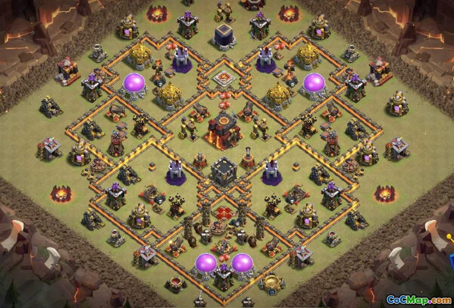 In Clash of Clans, players at Town Hall 10 have access to numerous base layout options to optimize their defenses and resources. The home village serves as the primary area where players build and manage their settlements. At this level, players can focus on creating effective war bases, trophy bases, and farming bases, each designed for specific strategies and objectives. The goal is to protect their resources and troops while ensuring maximum efficiency in both offense and defense.