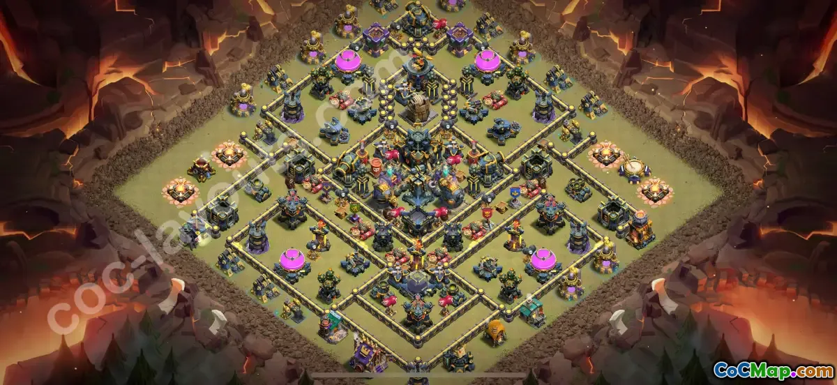 Included is a copy link for quick deployment, allowing clans to replicate this effective layout effortlessly. Whether you're focusing on protecting your resources or safeguarding your clan’s victory, this hybrid base is optimized for Town Hall 17’s high-level gameplay, ensuring a robust defense against a variety of attack strategies in Clash of Clans 2025.