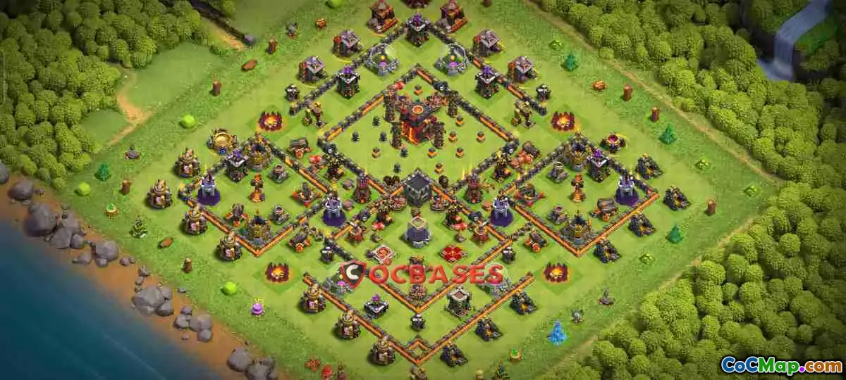 In addition to being resistant to aerial units, a well-constructed Town Hall 10 base also aims to resist three-star attacks. This is particularly important in competitive gameplay, where maintaining an upper hand is crucial for winning clan wars and achieving personal objectives. A good base layout will ensure that defensive buildings cover critical areas of the base and that the Town Hall is placed in a location where it is challenging for attackers to reach without sacrificing a lot of their troops.