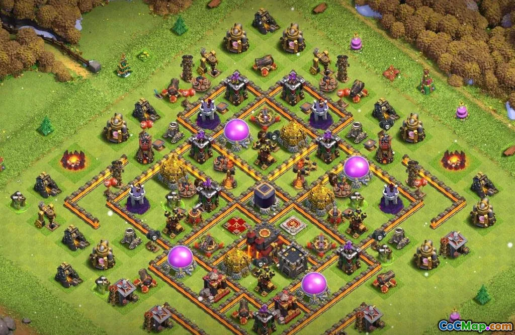 Town Hall 10 -ისთვის, განლაგებები კატეგორიზებულია მეურნეობის ბაზებად და ტროფეის ბაზებად. მეურნეობის ბაზის განლაგება შექმნილია იმისთვის, რომ დაიცვან რესურსები სხვა მოთამაშეების მიერ მოპარვისგან, ხაზს უსვამენ ბაზაში არსებულ საწყობთა განთავსებას. მეორეს მხრივ, ტროფეის ბაზის განლაგებები პრიორიტეტს უწევს თავდაცვის შენარჩუნებას ტროფების შესანარჩუნებლად, რაც დაეხმარება მოთამაშეებს თამაშში მოხვდნენ რიგებში. თითოეული განლაგების ტიპს სჭირდება მორგებული სტრატეგია, რომ შეესაბამებოდეს მოთამაშის კონკრეტულ მიზნებს და playstyle.