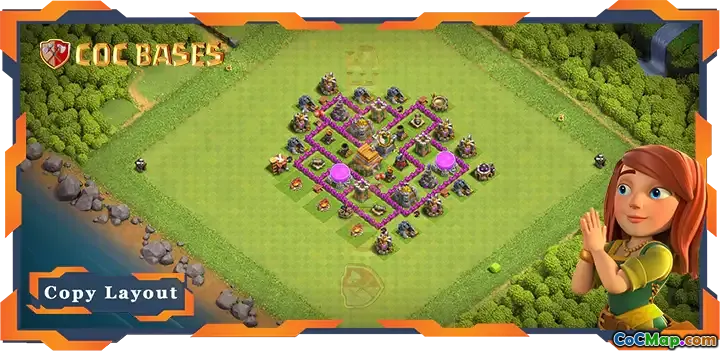 Designed for efficient resource farming, this layout minimizes attack routes and concentrates defenses around key storage areas. The base is ideal for players seeking steady resource gain and strong defense at Town Hall 6. You can easily access the shareable link to deploy this layout and enhance your farming strategy in Clash of Clans.