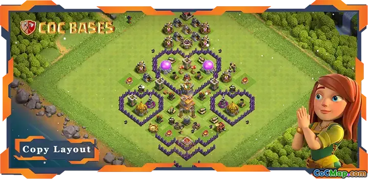 For maximum effectiveness, the base layout is optimized for the max TH7 level, balancing both defense and deception. Included with the layout is a convenient link for easy setup, making it simple for players to replicate and enjoy a fun, foolproof way to defend their resources while providing an entertaining gaming experience.