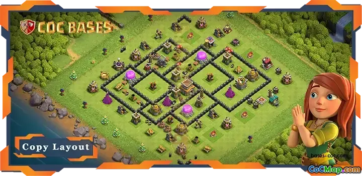 მე-8 დონის Town Hall-ის ინოვაციურ ბაზაში, რომელიც ემსახურება ჰაერსაწინააღმდეგო და მეურნეობის განლაგებას, Town Hall-ის განლაგება სტრატეგიულად შექმნილია მაქსიმალური დაცვის მიზნით. ცენტრალურად განლაგებული, იგი ათავსებს მერიას ძირითად თავდაცვით სტრუქტურებთან ერთად, როგორიცაა მშვილდოსანი კოშკები, ჯადოქრების კოშკები და ნაღმტყორცნები. ეს ცენტრალური განლაგება არა მხოლოდ უზრუნველყოფს დაუყოვნებლივ დაცვას საჰაერო თავდასხმებისგან, არამედ ეხმარება ძვირფასი რესურსების დაცვაში.
