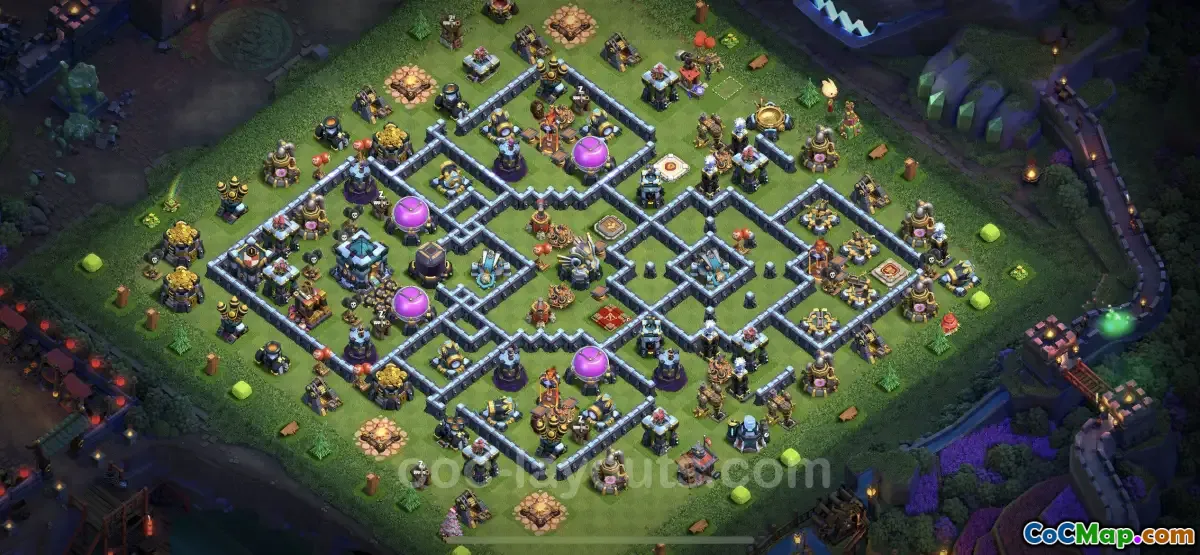 In Clash of Clans, creating a highly effective base layout is crucial for defending against attacks, particularly at Town Hall Level 13. Bases designed to resist three-star attacks are especially valuable as they force opponents to expend more resources and time in their attempts to secure a victory. A strong TH13 base can deter well-coordinated attacks by employing various defensive structures strategically positioned to cover critical areas and avoid vulnerabilities that attackers might exploit.