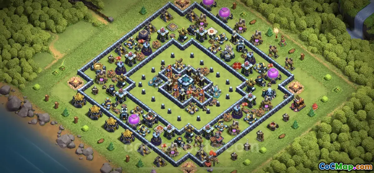 The Best Anti 3 Stars Base for Town Hall Level 13 is designed to provide effective defense against various attacks in Clash of Clans. With its strategic layout, this base aims to minimize the chances of opponents achieving three-star victories. The specific arrangement of defenses and structures is tailored to thwart different attacking strategies, making it a robust choice for players focused on maintaining a strong defense.