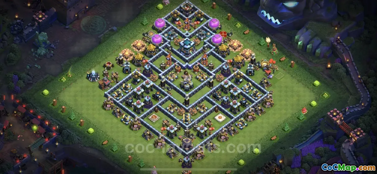 In Clash of Clans, a strong base design is crucial for those at Town Hall Level 13, especially for players looking to defend against various attack strategies. The best base layouts often incorporate features that provide comprehensive protection, making it difficult for opponents to score a three-star win. A well-designed TH13 base typically includes centralized key structures like the Town Hall, as well as strategically placed defenses that can cover multiple angles of attack, including high-value buildings and traps. Having a base that can defend against a variety of troop compositions is essential for maintaining trophies and resources.