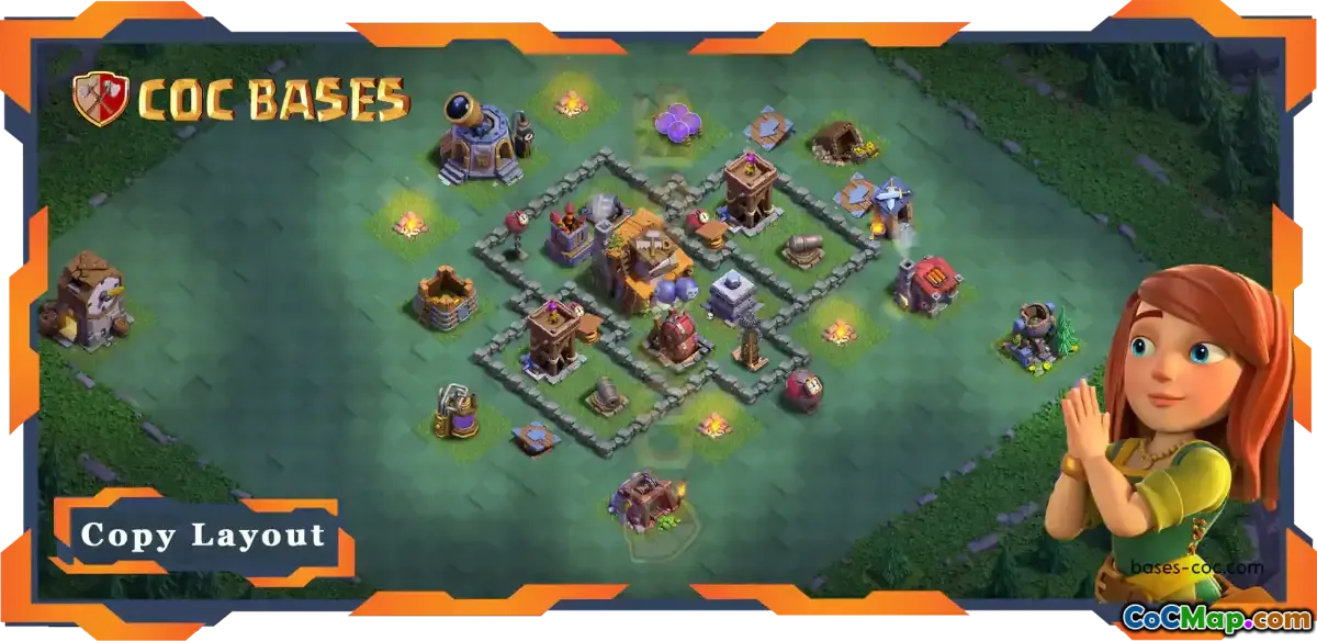 이 bh04 기본 디자인은 조화롭게 함께 작동하는 사려 깊은 방어 분포를 보여줍니다. 빌더 홀의 중앙 배치와 다양한 방어 구조물의 전략적 배치가 결합되어 효과적이고 균형 잡힌 기반을 만듭니다. 지상 및 대공 방어에 대한 이중 초점을 통해 기지는 다양한 공격 전략을 처리할 수 있는 장비를 갖추고 있어 건설업체에게 신뢰할 수 있는 선택이 됩니다.