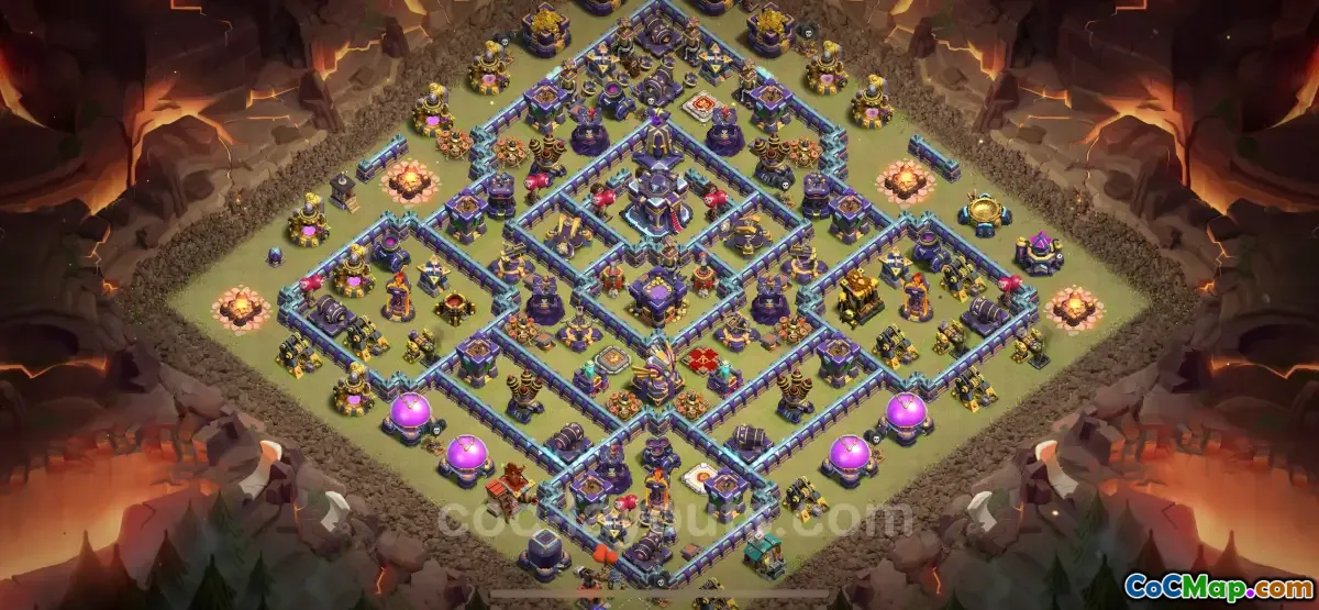 이 특별한 기본 배치는 공격자가 습격 중에 별 2개를 확보할 가능성을 최소화하는 데 중점을 둡니다. 이는 필수 구조물의 전략적 배치를 사용하여 적군이 시청에 도달하는 것을 어렵게 만드는 동시에 방어 건물이 서로를 효과적으로 덮도록 보장합니다. 함정, 벽, 방어 장치의 배치는 공격자를 물리치고 성공적인 방어로 이어지는 핵심이며, 이는 CWL의 경쟁 환경에서 매우 중요합니다.