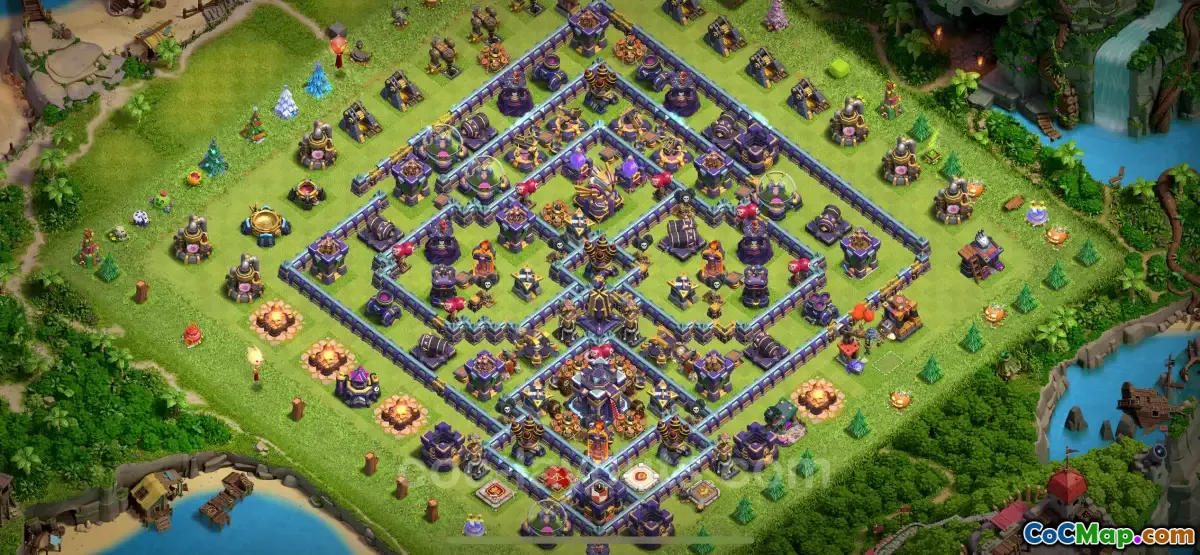 In crafting an effective Town Hall 15 base, key considerations include placing defenses to target air units effectively while also ensuring that other vulnerabilities are minimized. Anti-air defenses should be strategically positioned to intercept flying troops early in the attack. The design often includes compartments to slow down enemy troops and force them to navigate through traps and defensive fire, increasing the chances of thwarting an attack.