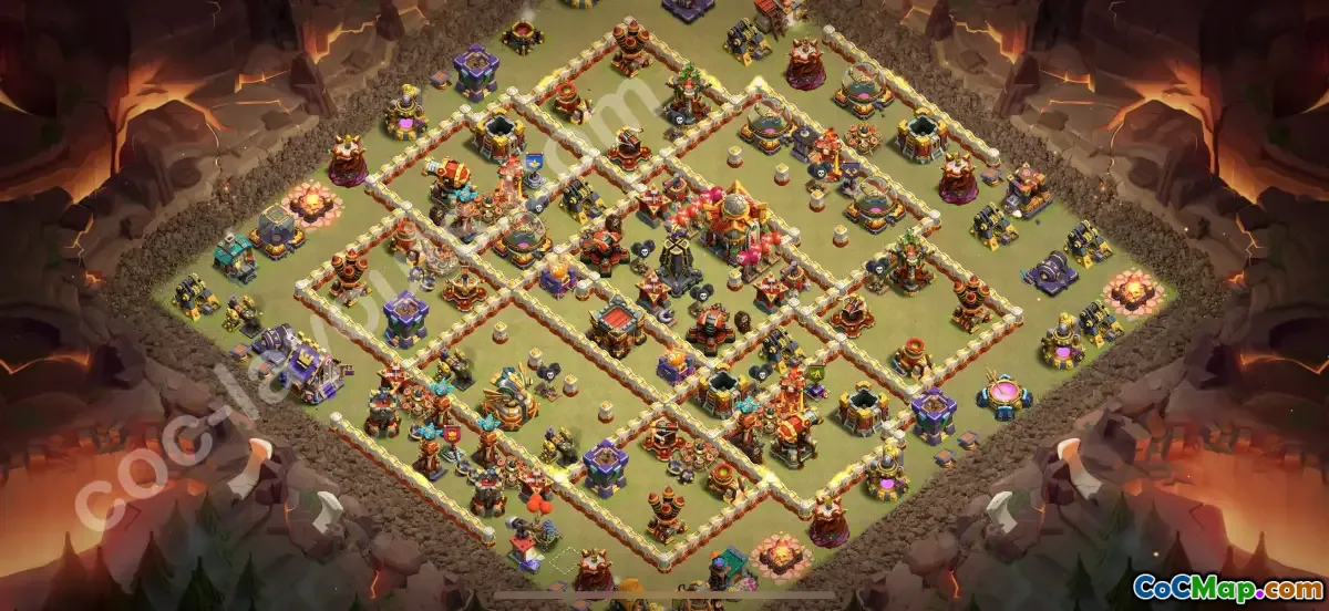 This expertly designed TH16 war base offers comprehensive protection against all attack strategies, making it ideal for clan wars in 2025. The layout features well-placed air and ground defenses, centralized Town Hall, and strategic traps to lure and eliminate enemies efficiently.