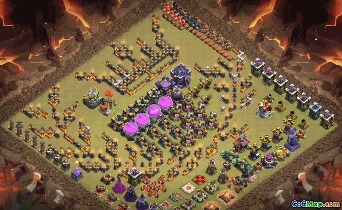 This Town Hall 15 base blends a funny, eye-catching design with practical coc map defense. The home village core is solid and compact, featuring key defenses arranged to protect resources and trophies while guiding enemy troops along controlled routes. It serves as a strong progress base for TH15 players, with clear upgrade paths and resilient perimeter walls that frustrate hog riders and mass dragons.