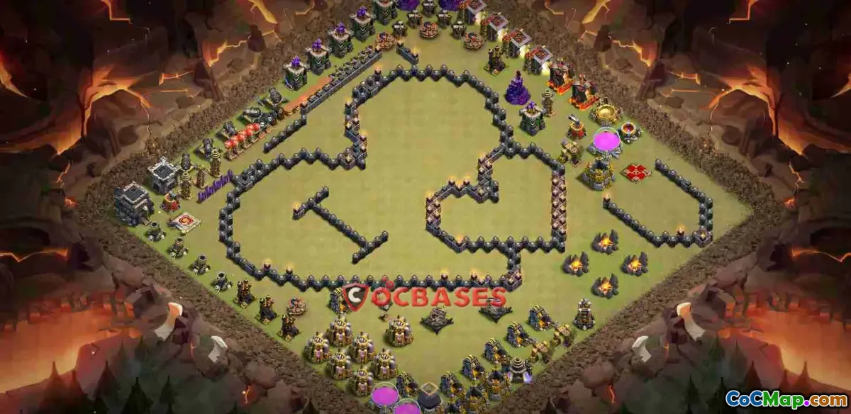 Discover the ultimate Town Hall 9 fun base! Enjoy an anti queen charge, anti lavahound design, and a charming ring layout. Clash of Clans awaits!