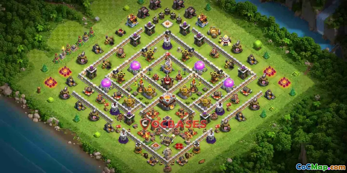 In addition to showcasing effective anti-ground defenses, the Town Hall 11 trophy base also incorporates strong anti-air measures, which are crucial given the prevalence of air attack strategies in higher-level play. The design seeks to balance the placement of traps and defensive structures to cover all angles of attack while retaining aesthetic symmetry. Players utilizing this base can expect an increase in their trophy count as it effectively neutralizes likely threats from various troop compositions.