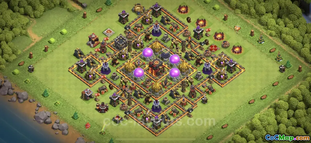 The Town Hall Level 10 base copy emphasizes the importance of hybrid defenses that can handle different types of attacks. By combining features that protect resources and the Town Hall itself, players can deter opponents from achieving two-star victories. This anti-two-star strategy is crucial for players who wish to minimize their losses and maintain a steady resource flow for upgrading their troops and defenses. The design ensures that attackers are confronted with multiple layers of defense, making it challenging for them to succeed.