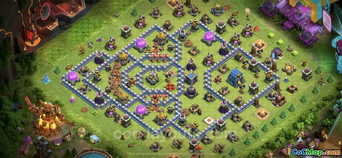 In Clash of Clans, players at Town Hall level 12 often seek effective base designs that will protect their resources and defend against various types of attacks. A compelling farming base design has been developed specifically for TH12 that positions itself as "anti everything," meaning it is equipped to handle a wide variety of attacking strategies. This layout is tailored to prevent attackers from easily accessing the resources stored within, thereby making it suitable for players focused on farming and resource defense.