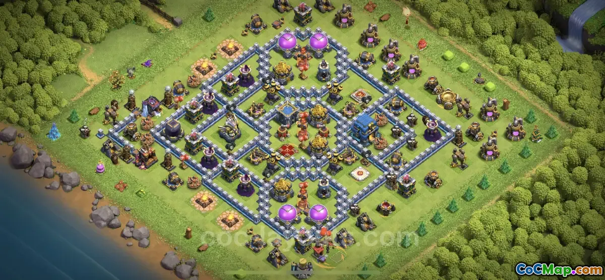 The suggested TH12 max level base layouts are optimized for resource defense, ensuring that critical resources are protected from enemy raids. By maximizing defensive structures' placements, players can create a formidable layout that discourages attackers. This design is particularly tailored for those who prioritize farming, enabling them to keep their hard-earned resources secure while they work toward upgrading their Town Hall and other facilities. Strategic placements of defenses, traps, and walls can create an efficient barrier against commonly used attacking strategies.
