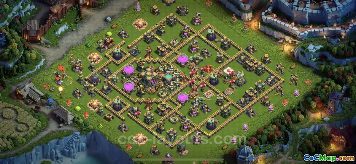 The Town Hall 14 base design for Clash of Clans focuses on creating an effective farming layout that emphasizes resource protection. This type of base is particularly important for players looking to safeguard their resources from enemy attacks. The hybrid design combines elements of both farming and defensive strategies, ensuring that vital resources are less vulnerable to being raided by opponents. By using a well-planned layout, players can optimize their defenses while still being able to generate resources efficiently.
