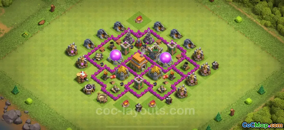 하이브리드 베이스 디자인은 농업과 방어 요소의 균형을 맞추기 때문에 TH6에서 인기가 있습니다. 하이브리드 설정에서 플레이어는 적절한 공격을 방어하기 위해 강력한 방어를 유지하면서 리소스를 할당할 수 있습니다. 이렇게 하면 너무 취약하지 않고 자원을 효율적으로 수집할 수 있을 뿐만 아니라 기지는 쉽게 전리품을 찾는 침입자를 저지할 수 있을 만큼 충분히 강화됩니다.