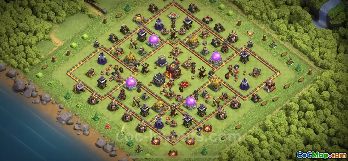 In a hybrid TH10 base layout, the defensive buildings are usually placed in a way that makes it difficult for attackers to reach the Town Hall while also safeguarding resources. The layout incorporates traps, walls, and other defensive mechanisms to minimize the chances of a successful two-star attack. Additionally, the ideal base will often facilitate strong defense against common attack strategies utilized at this level, such as those involving hog riders or air attacks.
