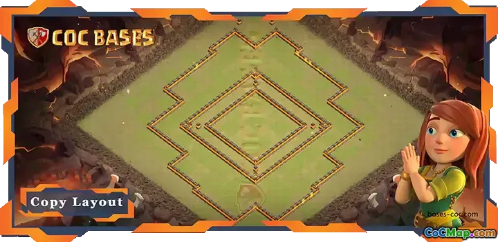 The central section of the base is further fortified with a variety of defensive mechanisms. There are air sweepers and a hidden tesla to disrupt air attacks, while giant bombs, regular bombs, and inferno towers are strategically placed in the second section. This layout is designed to create multiple layers of defense, ultimately forcing attackers to rethink their approach as they encounter a series of obstacles and traps that can significantly weaken their attacking forces.