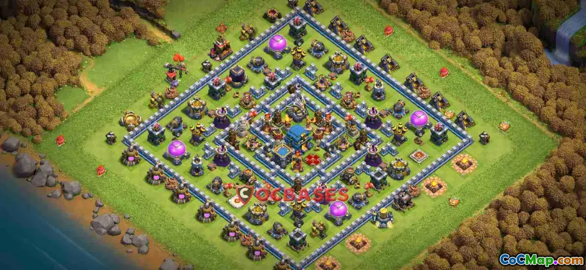 Additionally, the layout serves as a trophy ring, encouraging attackers to aim for the outer buildings rather than the core of the base. This design not only helps in preserving trophies but also maximizes the effectiveness of defense by drawing attackers into a carefully constructed trap. Players looking to enhance their competitive edge in the game can share or obtain the copy base link for this Town Hall 12 trophy base, allowing them to replicate the successful defense strategy and improve their overall gameplay experience.