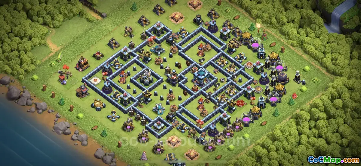 Discover the best unbeatable TH13 base design with anti-air & Electro Dragon defenses. Copy the top Town Hall 13 layout to protect your loot in Clash of Clans!