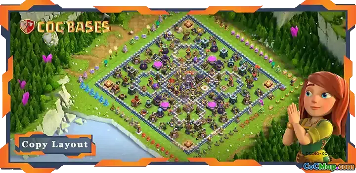 In addition to the town hall, several critical defensive elements are placed strategically around it. These include the Monolith, Clan Castle, Scattershot, Grand Warden, Royal Champion, and Archer Queen. Each of these units serves a unique purpose and enhances the base's overall defense. Their positioning is vital to ensuring that they can effectively support each other and cover various angles of attack, making it difficult for enemies to penetrate the heart of the base.