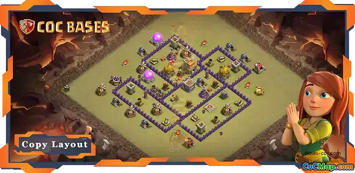 The Clash of Clans game features various layouts and strategies for players to optimize their bases for competitive gameplay. One popular layout is the Town Hall level 7 (TH7) war base, designed specifically for protecting against aerial attacks and ensuring a strong defense during Clan War Leagues (CWL). This layout is carefully structured to provide maximum protection for the Town Hall and essential defensive structures.