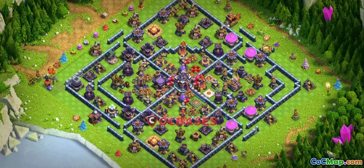 The Town Hall 15 trophy base is structured to provide defensive strength against various attack strategies. It incorporates defensive buildings in a manner that makes it difficult for opponents to penetrate defenses easily. By strategically placing key buildings and traps, players can dissuade attackers from securing three-star victories, which are crucial in boosting their own trophy counts. This design is particularly effective in protecting the Town Hall, as it often lies at the core of the base, surrounded by other support structures.