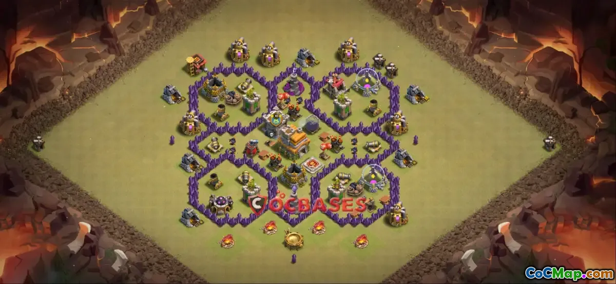 One of the key features of this Town Hall 7 war base is its anti-air capabilities. By strategically placing air defenses, the base can repel attacks from air units such as balloons and dragons, which are often used by players to overwhelm ground defenses. The layout is tailored to minimize the effectiveness of air troops, making it difficult for enemies to dominate from the sky. Additionally, the base incorporates anti-dragon measures, further fortifying its resilience against air assaults.