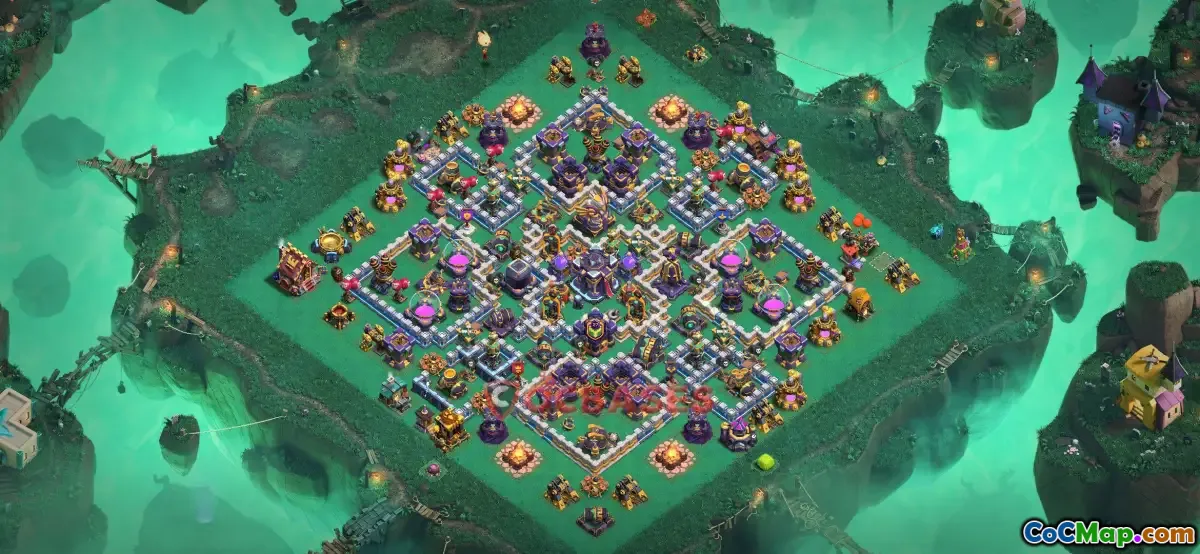 This Town Hall 15 farming base is designed specifically to protect your resources and maximize your farming efficiency in Clash of Clans. Its layout strategically positions storages and resource collectors to prevent attackers from easily raiding large amounts of loot. The base also incorporates walls and defensive placements that slow down enemy troops, giving your defenses more time to eliminate attackers and safeguard your resources.