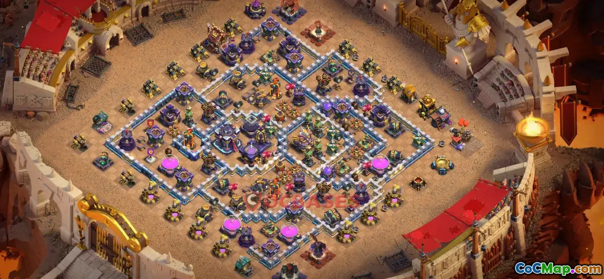 The Town Hall 15 War Base in Clash of Clans is designed to provide strong defenses during clan wars. It often incorporates various traps, walls, and defensive structures strategically placed to hinder attacking troops. The layout aims to protect the Town Hall as well as other critical buildings, making it difficult for opponents to achieve a high percentage destruction or a three-star victory.