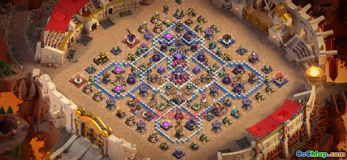The Town Hall 15 war base in Clash of Clans is designed to offer strong defense against enemy attacks during wars. It features strategic placement of walls, defenses, and traps to protect the core and key resources. The primary goal of this base setup is to prevent opponents from reaching the Town Hall easily, which is often the main target in war attacks. Properly designing a Town Hall 15 war base involves balancing the protection of resources with effective placement of defensive structures such as Inferno Towers, Archer Towers, Cannons, and Air Defenses.