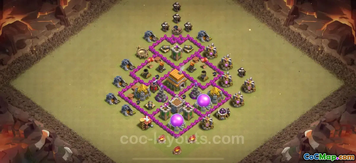 The top Anti 2 Stars War TH6 bases are engineered to protect both the Town Hall and the Clan Castle, which are vital points for scoring in raids. By leveraging a centralized design, these bases make it more difficult for opponents to reach and destroy the Town Hall while generally forcing attackers to spread their forces thin. The layout often includes various defensive structures positioned to cover each other, creating overlapping fields of fire that can effectively damage incoming enemies.