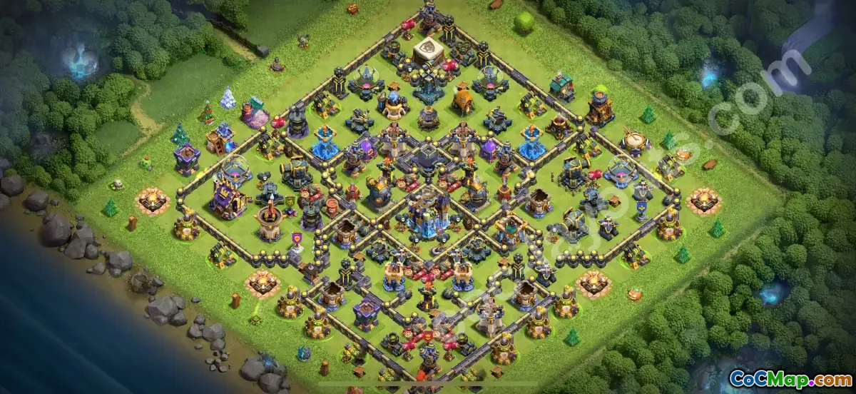 This best Anti 2 Stars TH18 base layout for Clash of Clans 2025 is optimized to defend against high-level attacks in Legend League. Its strategic design focuses on protecting key defenses, resource storages, and the Town Hall, making it extremely difficult for attackers to secure 2 stars.