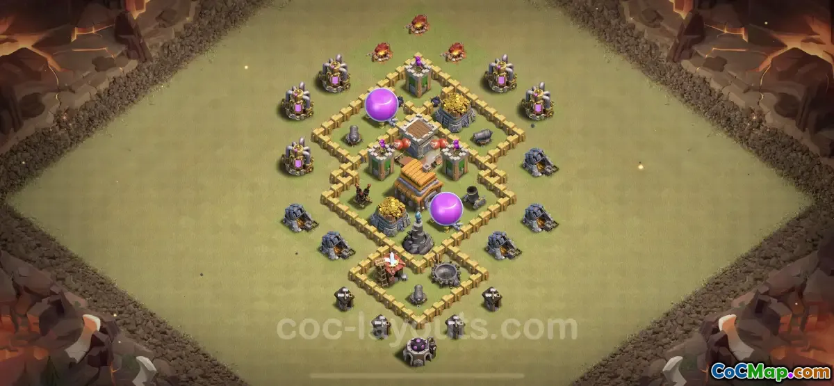 One key aspect of this specific Town Hall 5 base is its strategic placement of buildings. Defensive structures such as cannons, archer towers, and barbarian statues are arranged to ensure overlapping fields of fire, making it difficult for attackers to find weak spots. The layout also incorporates traps and bomb placements that can surprise attackers and minimize their troops’ effectiveness. Such arrangements are crucial in CWL battles where opponents are often well-prepared and tactical in their attacks.