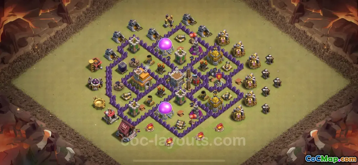 This TH7 base is characterized by its strategic layout that not only minimizes the chances of losing stars but also maximizes defensive capabilities against common troop compositions and spells used at this level. Players can acquire links to the base design, allowing them to easily replicate it in their own villages. The design's hybrid nature means that it can serve well for both war defenses and regular multiplayer encounters, making it a versatile choice for clan members looking to bolster their defenses.