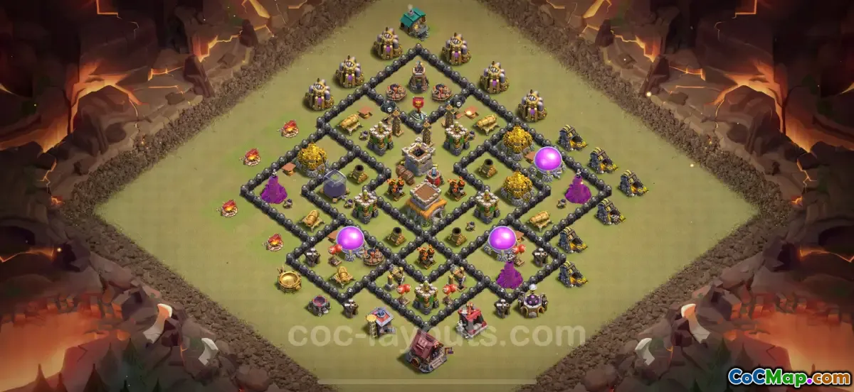 This Anti Everything base for TH8 is particularly useful in the competitive environment of Clan War Leagues. It aims to prevent attackers from obtaining even a single victory point, thus protecting the player's overall war record. The strategic placement of defenses and the thoughtful arrangement of structures create a formidable barrier against various types of army compositions that attackers might employ. The base has been tested and updated for 2025, ensuring that it remains relevant against current attack strategies.