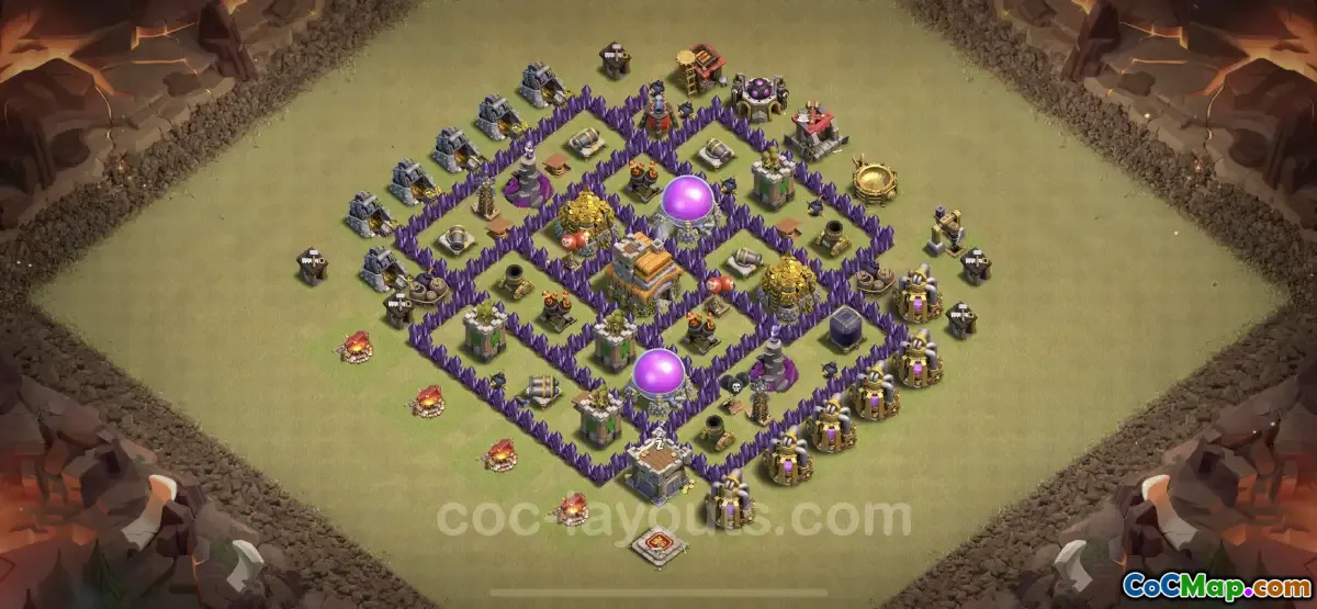 The Best Anti 2 Stars War Base for Town Hall Level 7 (TH7) is specifically designed to resist attacks, particularly during Clan War Leagues (CWL). These bases utilize strategic layouts that force attackers to use more troops or time than they initially planned, especially focusing on preventing them from achieving a two-star victory. The layout incorporates various defensive structures effectively, ensuring that opponents struggle to gain the necessary stars against it.