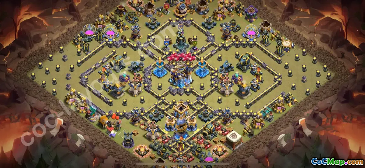Facing tough opponent attacks at Town Hall 18? This top-tier anti-3 stars war base layout is designed to maximize defense during Clan War Leagues in 2025. Its smart placement of defenses, with well-guarded core and strategic traps, helps prevent common attack strategies from achieving 3 stars.