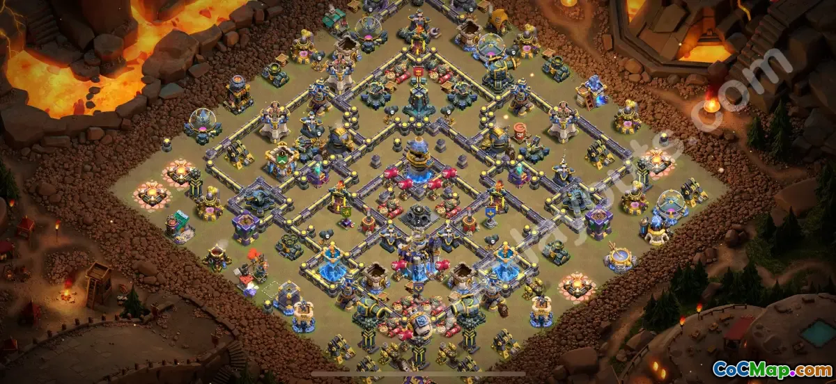 Discover the top Clash of Clans Town Hall 18 war base layout designed specifically to defend against 3-star attacks in CWL and clan wars. This layout features optimized placement of inferno towers, air defenses, and traps to maximize coverage and minimize vulnerabilities, making it highly effective against all attack strategies.