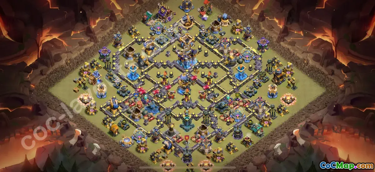 This top-rated Anti 3 Stars War Base for Town Hall 18 is specifically crafted to defend against high-level attack strategies in the 2026 CWL season. Its well-placed defenses, including multi-layered walls, strategically positioned splash damage structures, and well-protected Inferno Towers, make it highly resistant to common attack combinations among top clans.