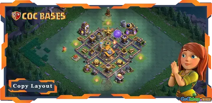 The design of the base incorporates walls that are strategically placed to enhance security. These walls are essential in creating compartments within the base, which can slow down enemy troops and limit their movement. The configuration of walls is crucial as it ensures that attackers cannot easily penetrate the heart of the base where the builder hall is located. This layered defense is an important aspect of the BH10 layout, allowing a combination of defensive structures to work together effectively.